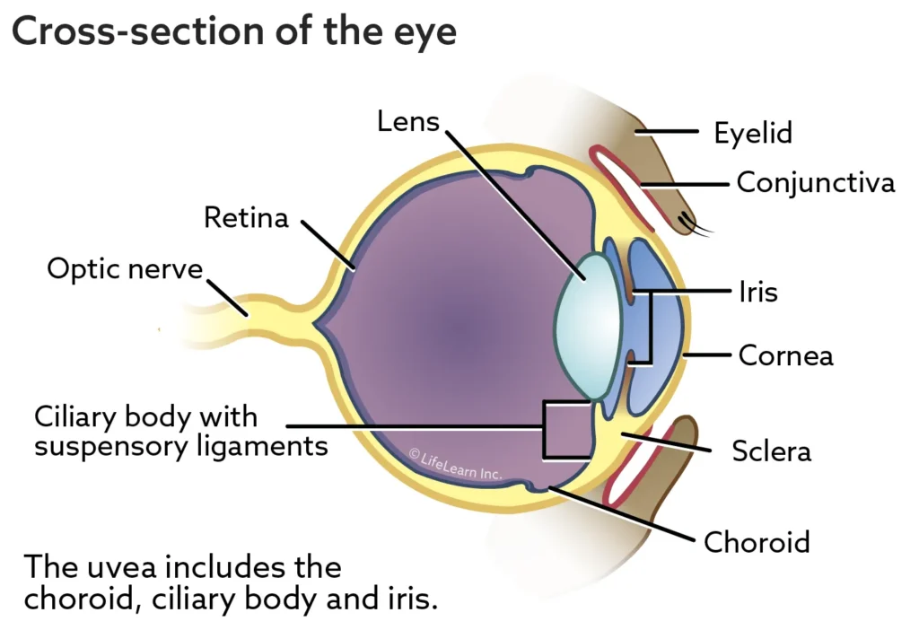 A melanoma of the eye is a type of cancer that develops from the uncontrolled growth of melanocytes, a type of cell found throughout the body in many tissues (e.g., skin, eye, inner ear, bones, and heart).