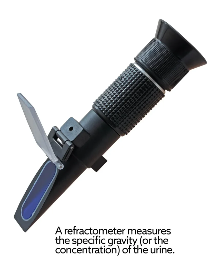- Measure concentration (also known as the specific gravity) of the urine.