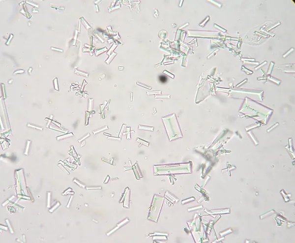 Crystals in the urine do not always indicate disease. Some crystals form when a pet is given certain types of medication. Crystals can also form in urine after it has been collected, especially if there is a long delay before the urinalysis is done. If this happens, your veterinarian may wish to examine a fresh sample immediately after it has been collected to determine if the crystals are significant. Image via Wikimedia Commons/Joel Mills (CC BY-SA 3.0.)